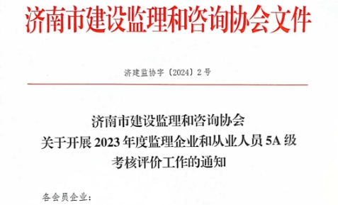 · 2024-07-15 14:59:16 济南市建设监理和咨询协会关于开展2023年度监理企业和从业人员5A级考核评价工作的通知