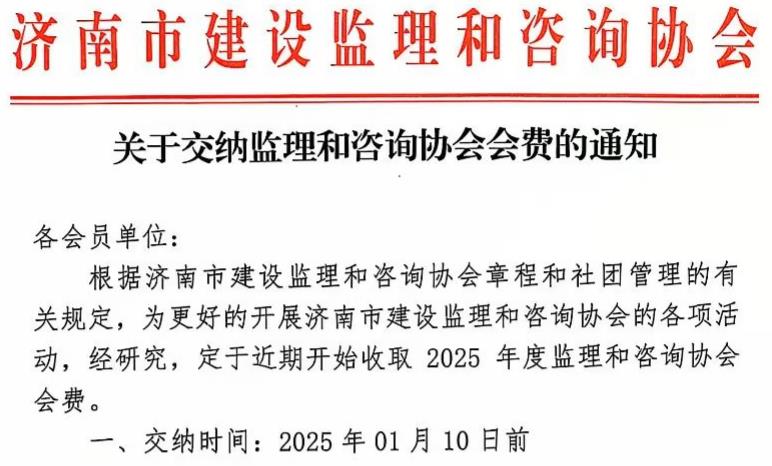 · 2024-12-12 09:38:01 关于交纳监理和咨询协会会费的通知