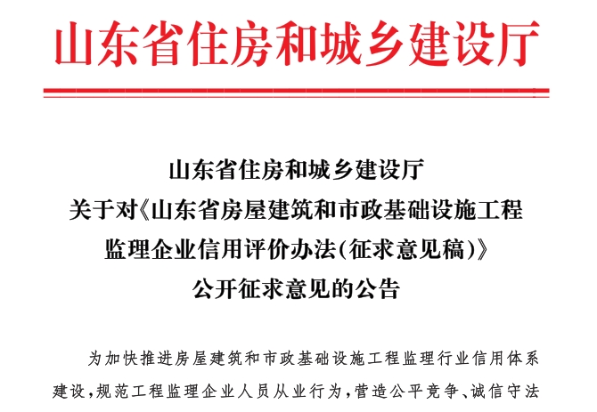 · 2024-08-29 10:45:15 省住建厅关于对《山东省房屋建筑和市政基础设施工程监理企业信用评价办法(征求意见稿)》公开征求意见的公告