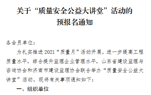 · 2021-10-21 09:38:39 关于“质量安全公益大讲堂”活动的 预报名通知
