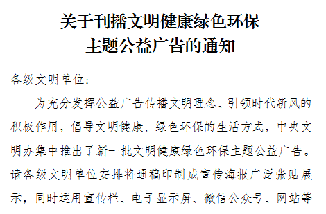 · 2022-02-16 10:49:08 转发关于刊播文明健康绿色环保 主题公益广告的通知