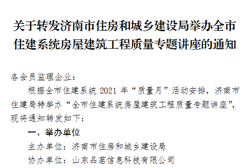 · 2021-09-13 11:21:03 关于转发济南市住房和城乡建设局举办全市住建系统房屋建筑工程质量专题讲座的通知