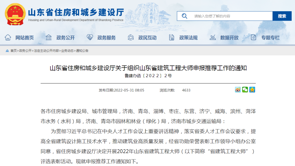 · 2022-06-16 09:47:01 转发山东省住房和城乡建设厅关于组织山东省建筑工程大师申报推荐工作的通知