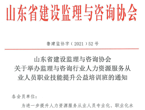 · 2021-12-07 19:18:10 关于举办监理与咨询行业人力资源服务从业人员职业技能提升公益培训班的通知