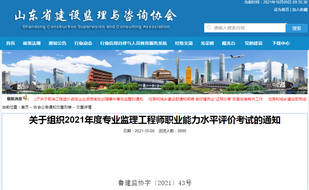· 2021-10-09 09:34:14 关于转发山东省建设监理与咨询协会《关于组织2021年度专业监理工程师职业能力水平评价考试的通知》