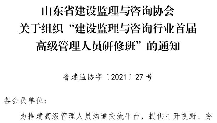 · 2021-07-02 17:34:55 转发山东省建设监理与咨询协会关于组织“建设监理与咨询行业首届高级管理人员研修班”的通知